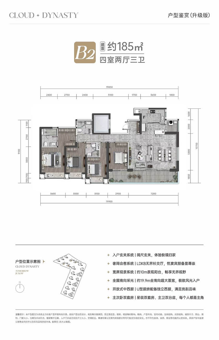 将天生高贵的基因注入空间尺度之中,以建面约169-297m²河岸甄装大平层敬献高新主场,以侈度丈量奢阔会客系统,诠释城市塔尖的非凡气度,在尺度中雕琢细节,从星级套房式主卧到独立卫浴,在距离中挚守亲密。