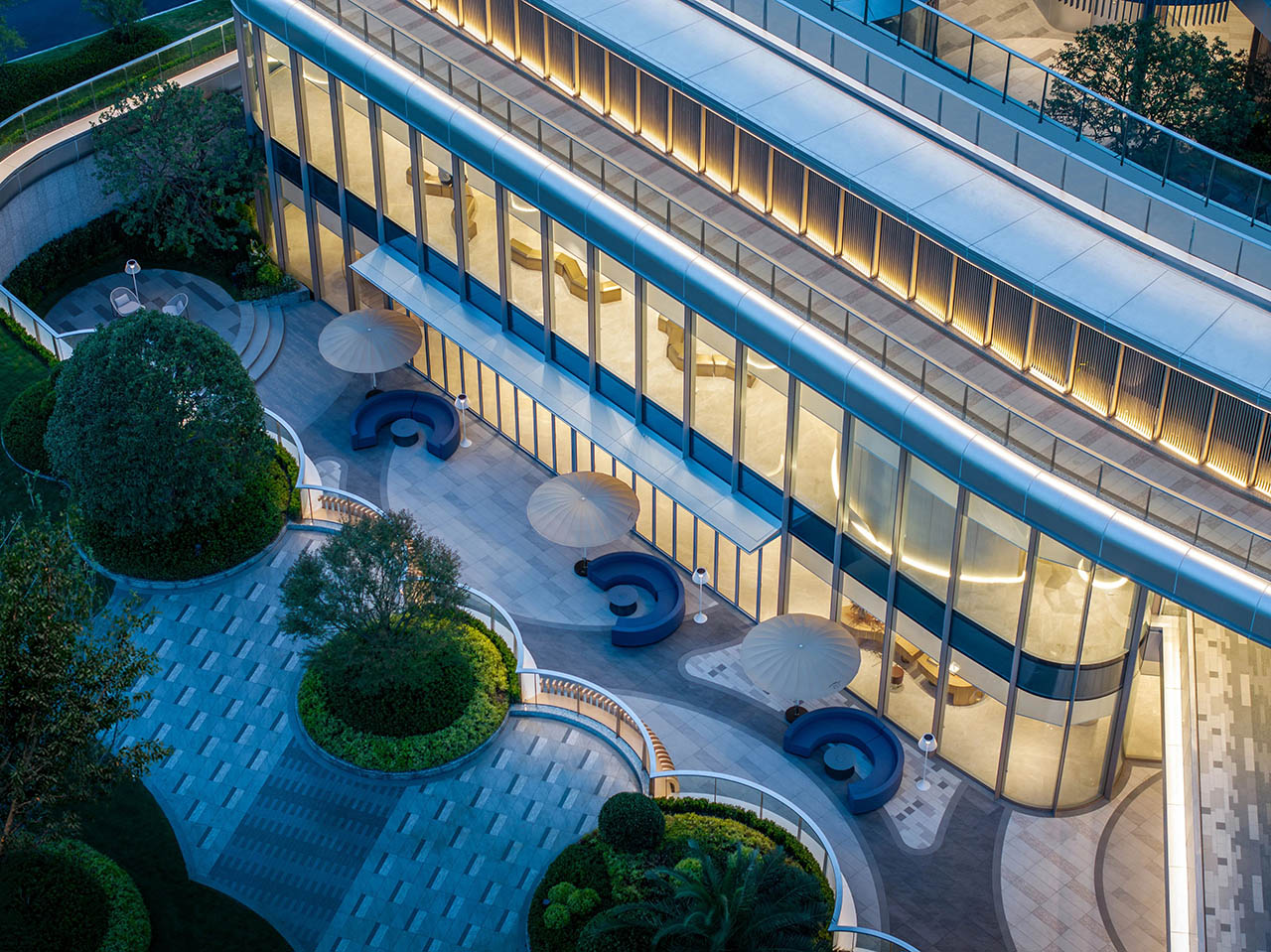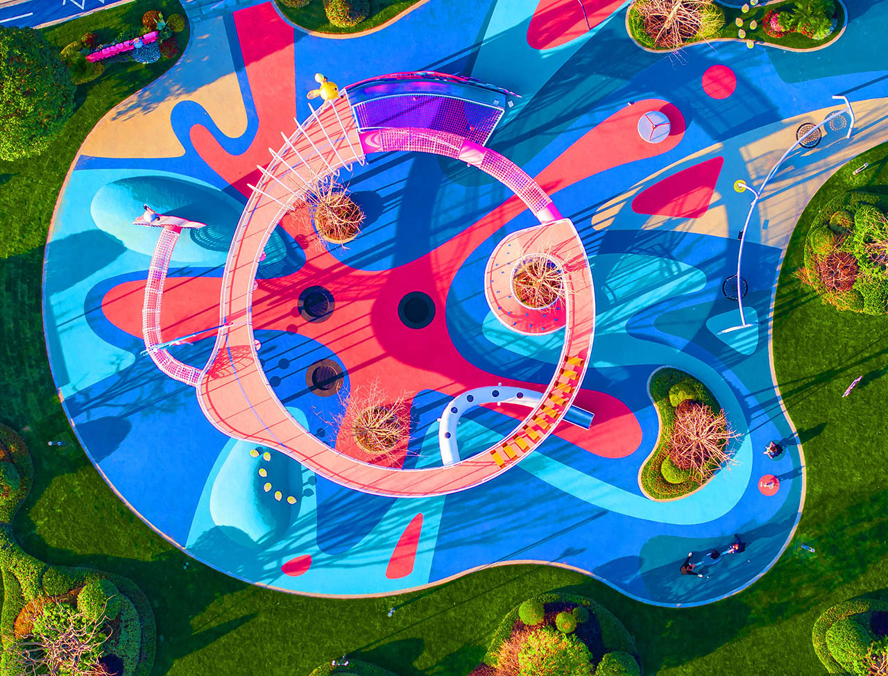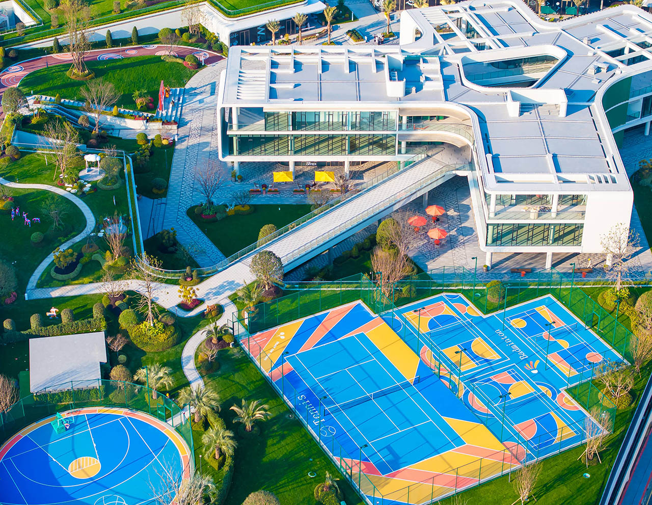项目内打造约7万平方米一体化公园,以蓝宝石剧场为核心,构建一心三岛五进归家动线。规划篮球场、羽毛球场、轮滑广场、街式滑板场等15个运动场地,荧光广场、音乐阶梯、云上甲板、高线飞虹、海星聚场五大网红地标点缀其间。架空层打造阅读、共享厨房、儿童游乐等功能空间,内外交融创造楼下目的地,尽享诗意栖居。