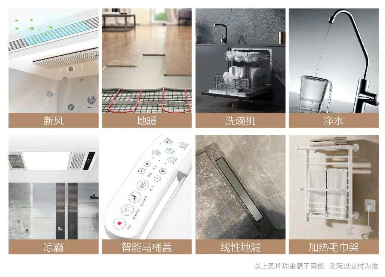 现房交付,所见即所得,高品质精装交付,装修标准3000元/平,包含新风、地暖、洗碗机、净水、凉霸、智能马桶盖、线性地漏和加热毛巾架等,轻松开启高品质生活新篇章。