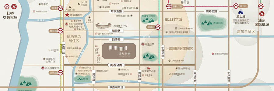 周边环绕地铁16号线与18号线,短驳交通便捷,通勤至张江、前滩、陆家嘴、人民广场等核心区域轻松无忧。自驾通过沪奉公路无缝衔接外环、中环、罗山高架及申嘉湖高速,纵横都市,出行从容。