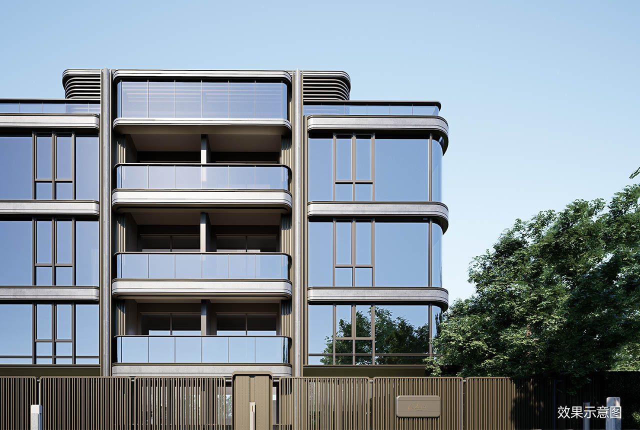 源寻海派建筑大师邬达克的笔触,以“绿房子”、武康大楼为灵感而雕刻的建筑肌理,在现代审美的转译下,弧角晶面与流金线条的交融,形成独属这个时代的立面美学,昭示着屋檐之下不言而喻的身份。