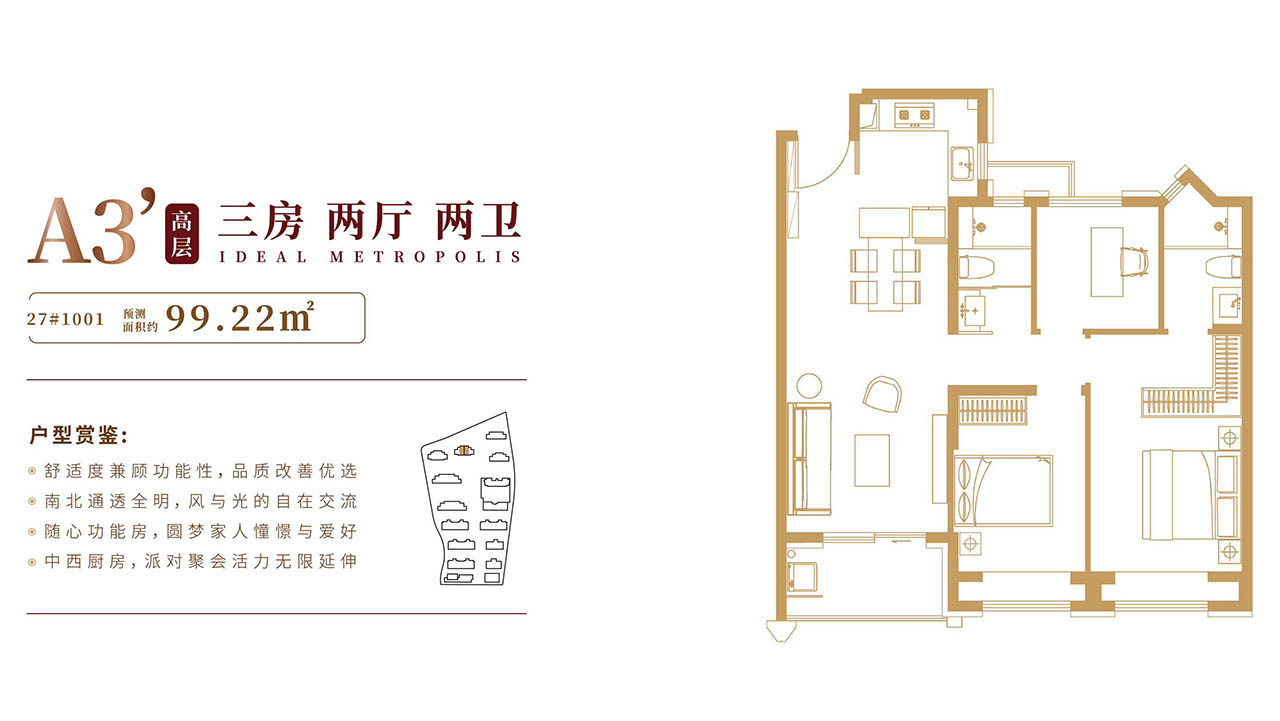 我们整个社区没有小户型,99m²三房起步。